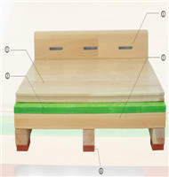 ③ 延邊線安裝鋪設(shè)完成******條地板后,開始采用相同的方法相繼安裝鋪設(shè)其他地板,每條地板在拼裝后固定前都需要主用工具捶打,使其與已安裝完的地板緊密嚴實的組合在一起,然后再固定,以此類推完成全部地板的安裝鋪設(shè)。此施工期間須時刻注意的問題有兩項:一是須時刻注意每條地板安裝鋪設(shè)完后是否與相對應(yīng)的場地對向另一端墻角的邊線保持平行,若發(fā)生輕微不平行時可以隨時利用每條地板之間的間隙進行調(diào)整,以此保證平行度。二是須根據(jù)本地常年空氣的平均濕度,間斷性的每安裝鋪設(shè)完幾條或多條地板時則須預留1-2mm左右的間隙再安裝鋪設(shè)下一條地板,以此作為實木運動地板在受空氣濕度影響而產(chǎn)生的膨脹與伸縮空間,這一點很重要。